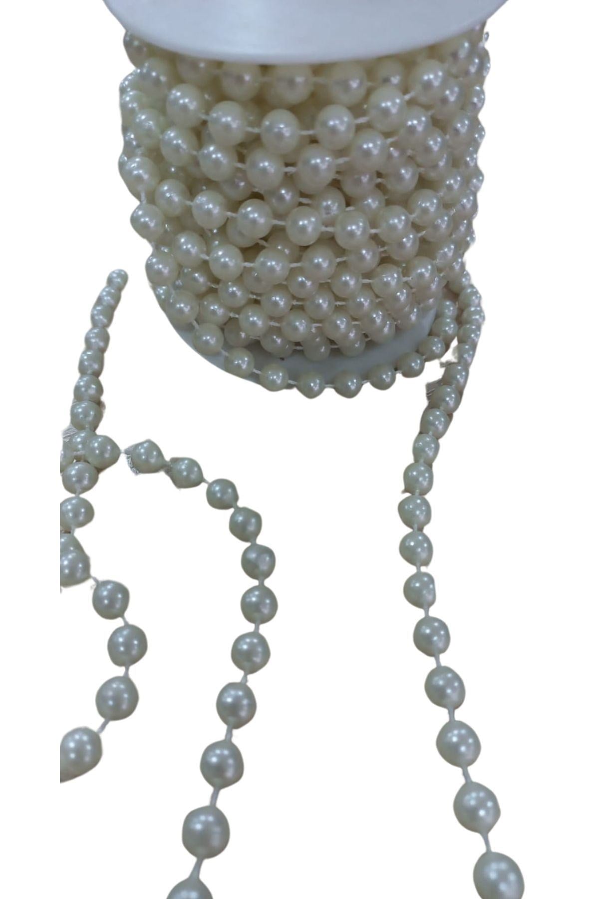 Sýralý Yuvarlak Ýnci En 1 cm Krem 1 Metre